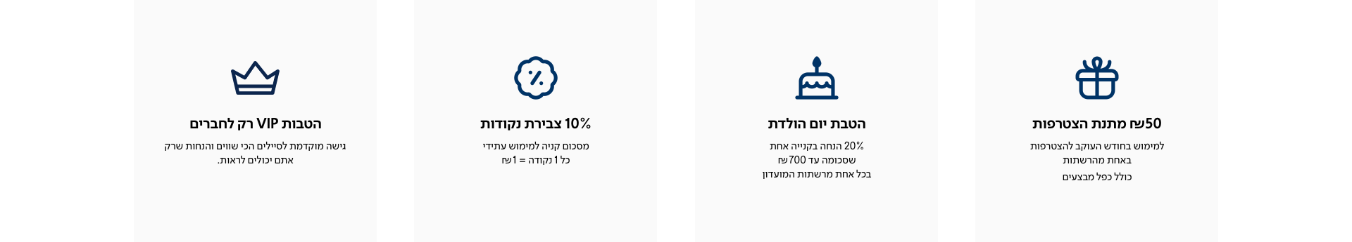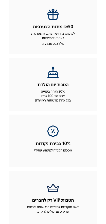 הצטרפו למליון חברי המועדון שלנו והתחילו להנות מהטבות בלעדיות בנוסף